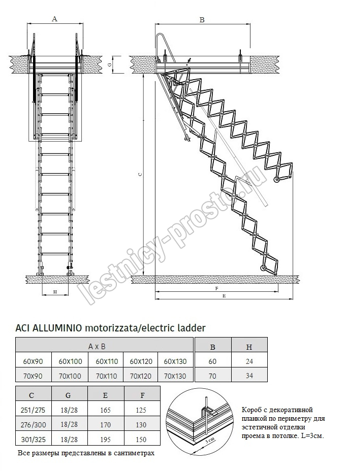 Чердачная лестница с электроприводом. Fantozziscale Motor Base 70×90 см