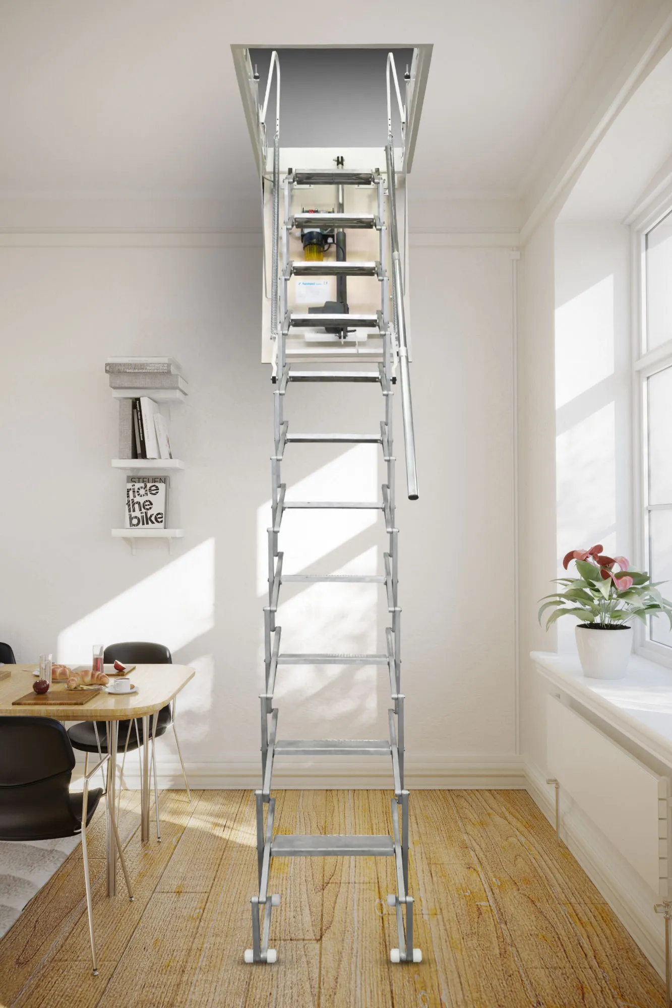 Лестница на мансарду или чердак автоматическая с пультом дистанционного управления
