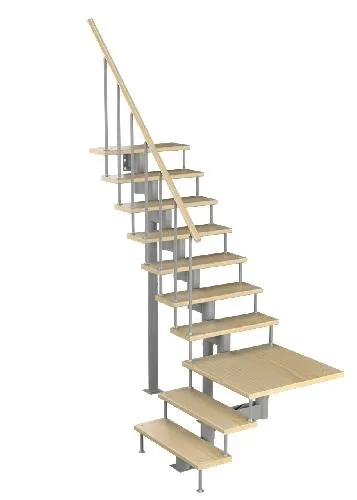 Легкая для монтажа и доработок по высоте: можно добавить подиум или легко обрезать по высоте. Практичная и компактная – удобно наступать так, как все ступени открыты. Угол подъема составляет 34 градуса. Монтаж осуществляется силами двух человек на объекте по указаниям, приведенным в паспорте на лестницу.