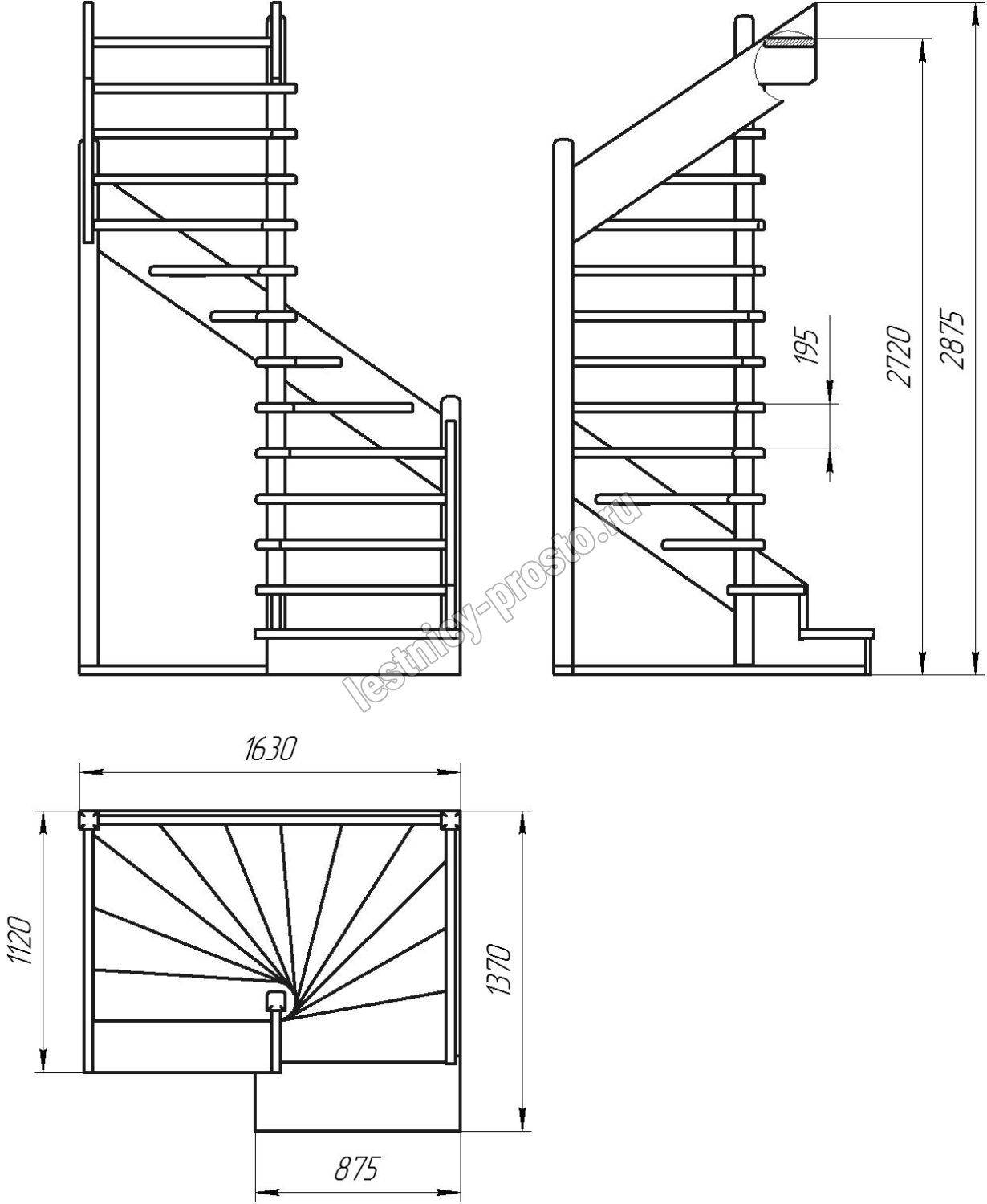 Высота лестницы 2720 - 2920 мм