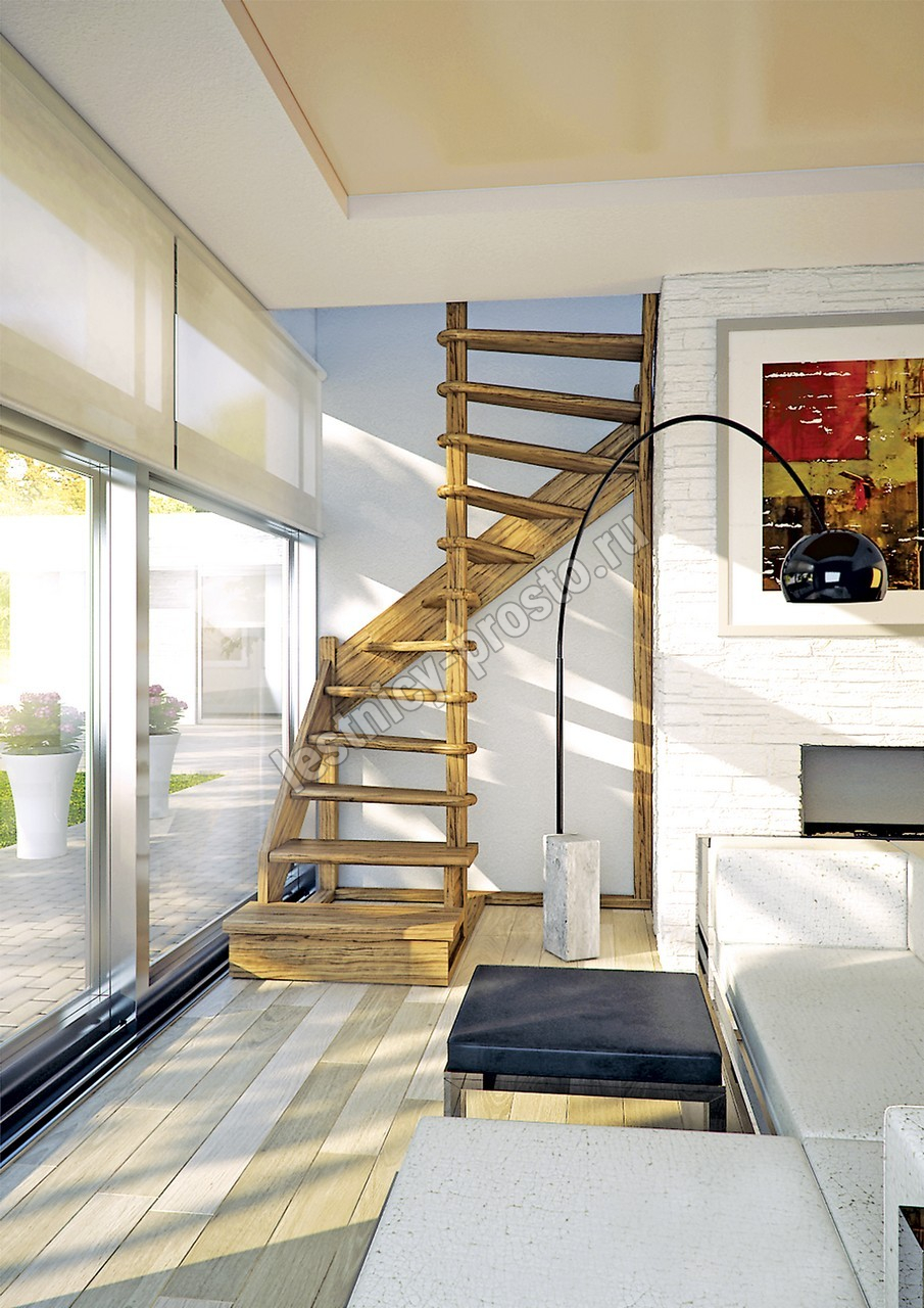Деревянная межэтажная лестница ЛЕС-01 2720-2920 проем 1630-1120, Бук