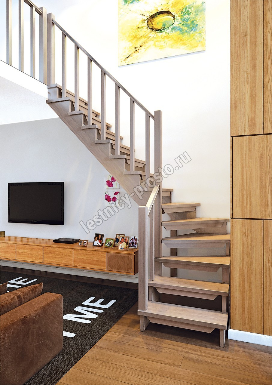 Деревянная межэтажная лестница ЛЕС-09 2900 проем 2580-900, Бук