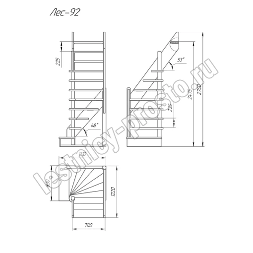 Деревянная межэтажная лестница ЛЕС-92 у, Лиственница