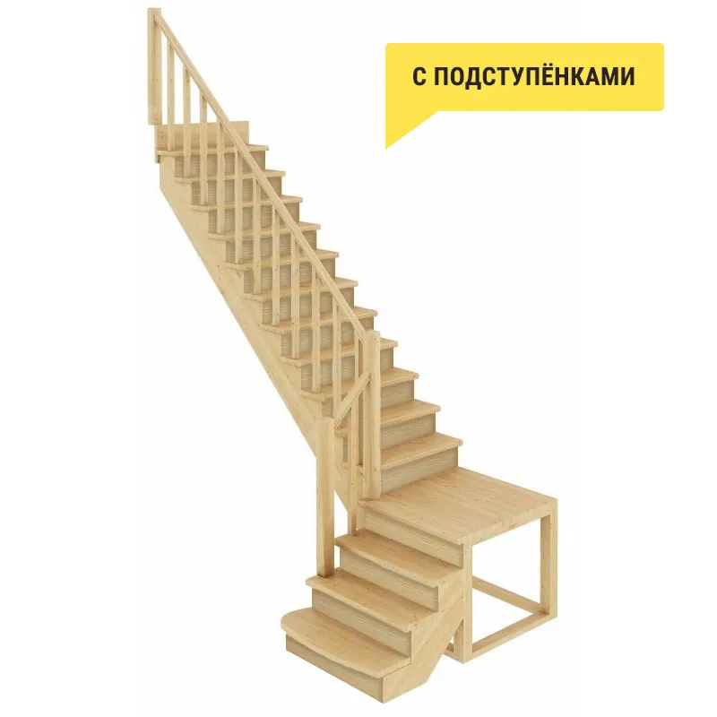 Базовый комплект включает в себя деревянные элементы лестницы без какого-либо покрытия. Лестница поставляется в разобранном виде.