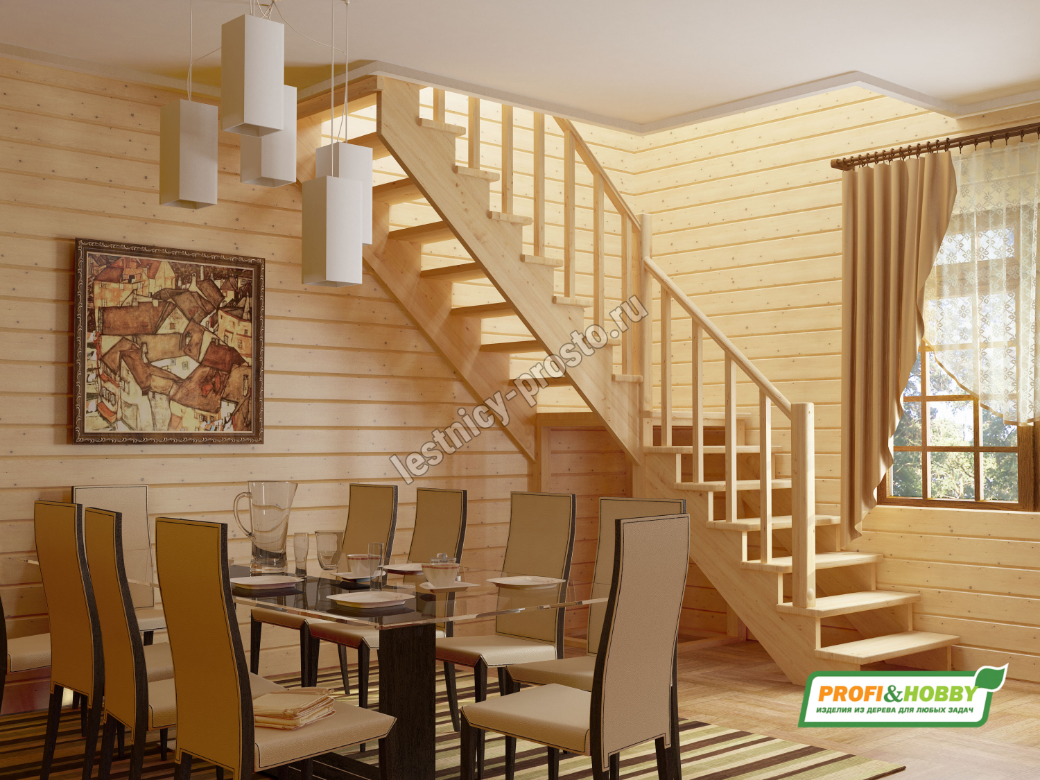 Базовый комплект включает в себя деревянные элементы лестницы и ограждения без какого-либо покрытия.