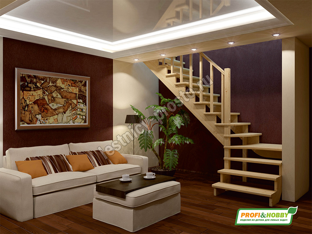 Ступени и поручень лестницы изготовлены из бука, остальные элементы из сосны.