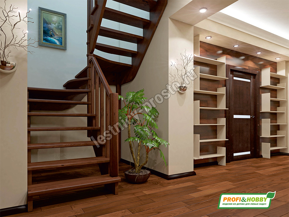 Ступени и поручень лестницы изготовлены из дуба, остальные элементы из сосны.