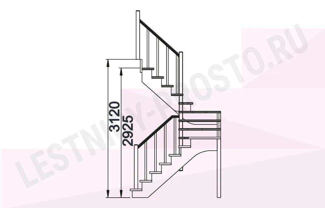Базовый комплект включает в себя деревянные элементы лестницы и ограждения без какого-либо покрытия.
