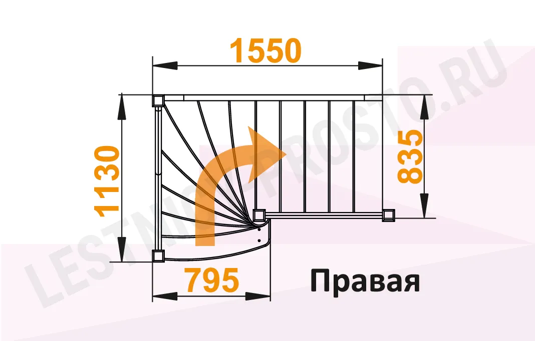 Схема лестницы ЛС-91М+2 с поворотом направо