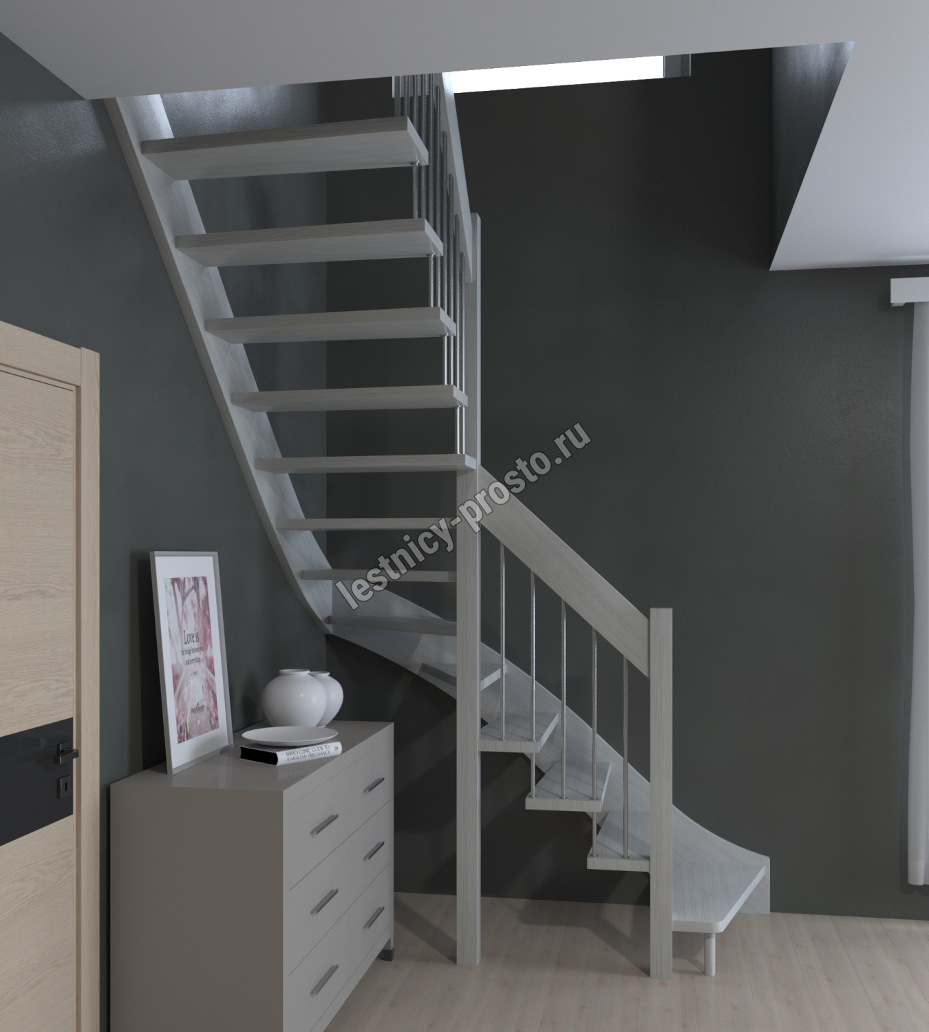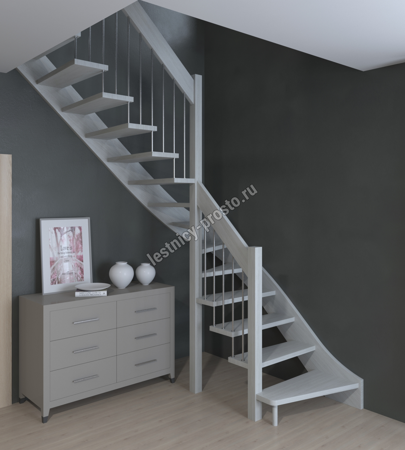 Лестница Prosto Console г-образная забежная бук, h225 см (9 ступеней)