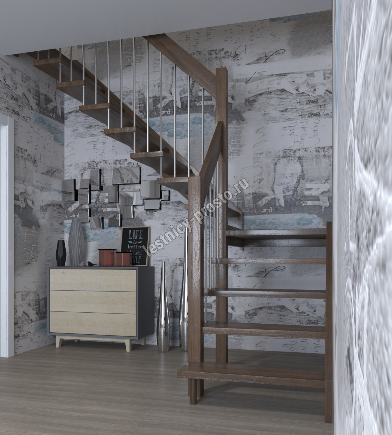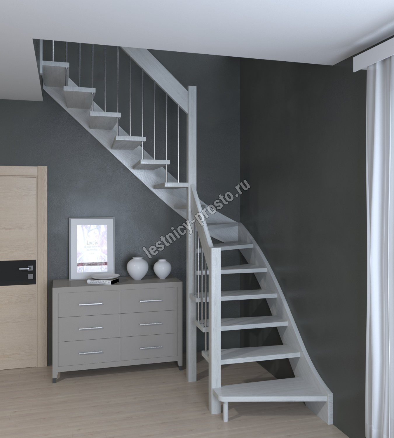 Лестница Prosto Console г-образная забежная дуб, h225 см (9 ступеней)