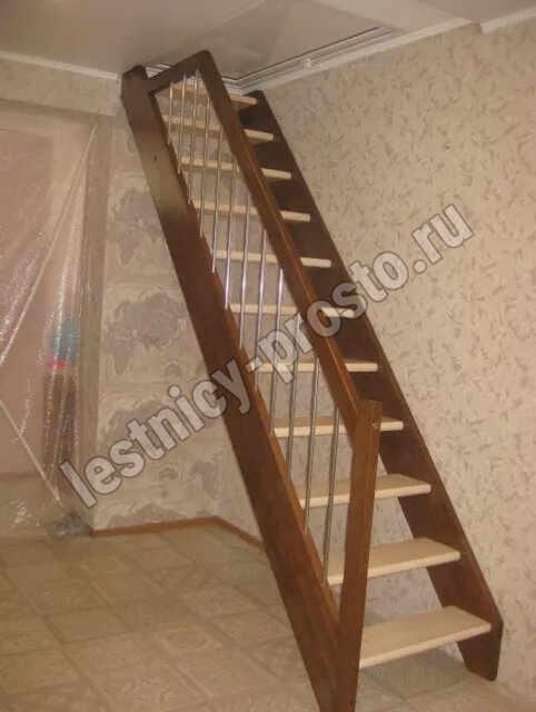 Ограждение на выбор: стойки из нержавеющей стали или деревянные балясины. Перила и столбы из дерева.