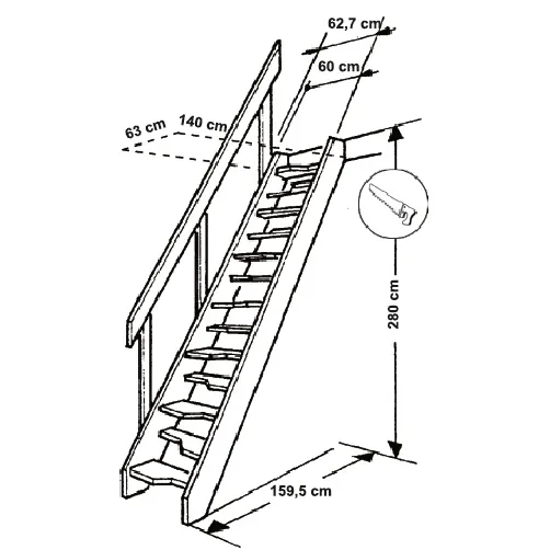 Схема лестницы М-011У с поручнем
