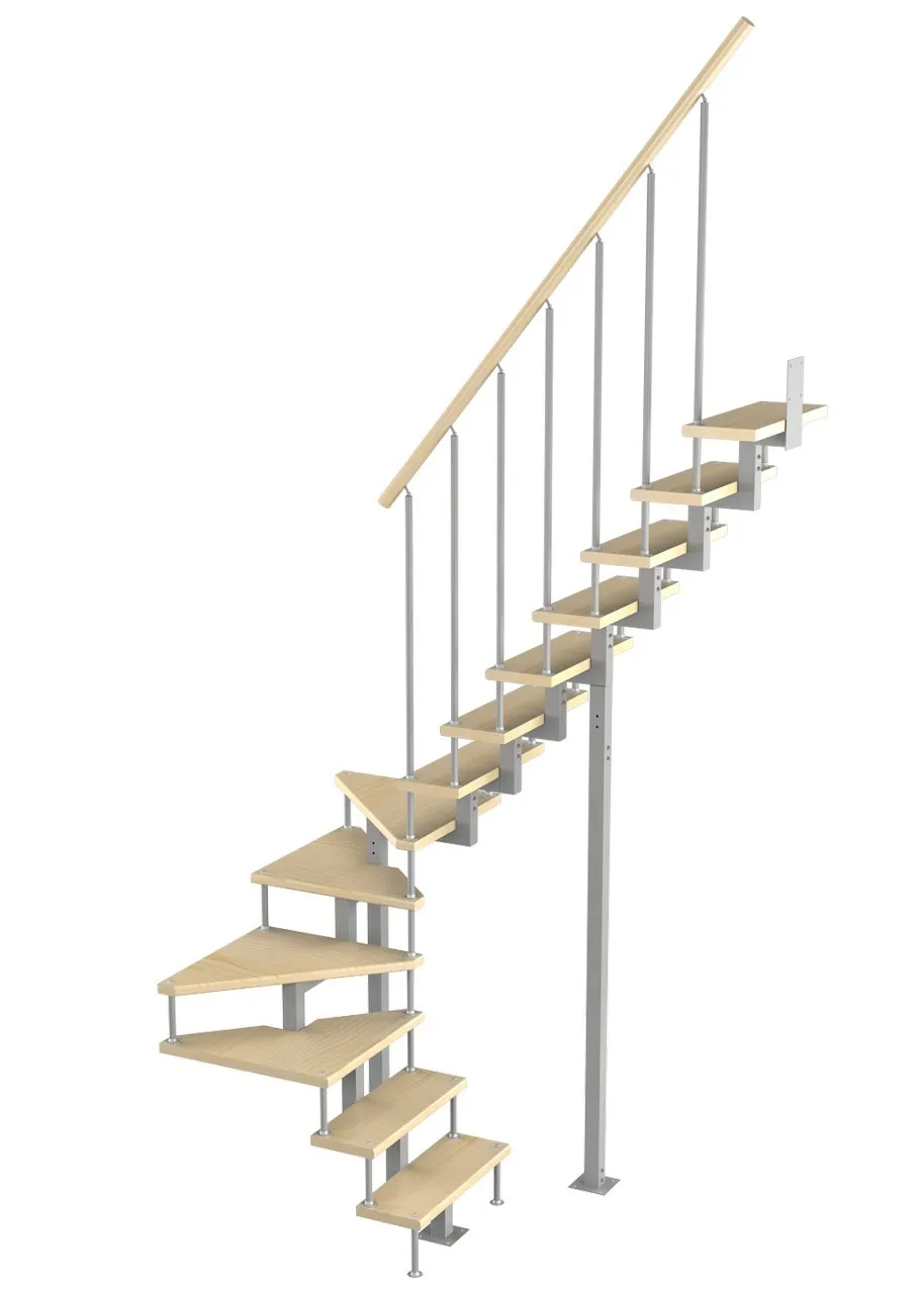 Поворот на 90° реализован посредством поворотных ступеней, высота поворота определяется параметрами вашего помещения и размерами проёма.