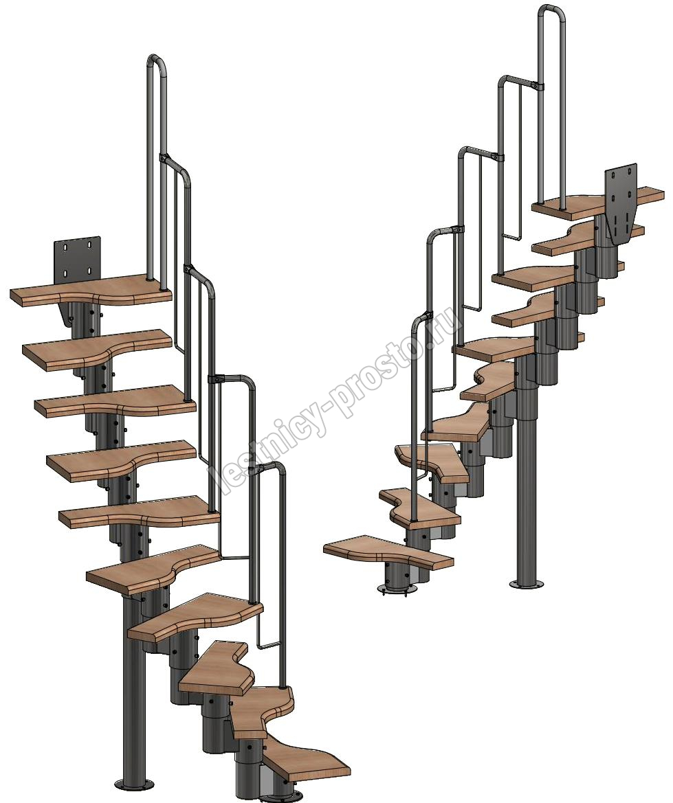 - Регулируемый по высоте в пределах 180-240 мм модуль. Большой диаметр и толщина металла деталей обеспечивают жесткость и прочность конструкции. Регулировка каждого модуля по высоте позволяет легко приспособить лестницу под ваше помещение.