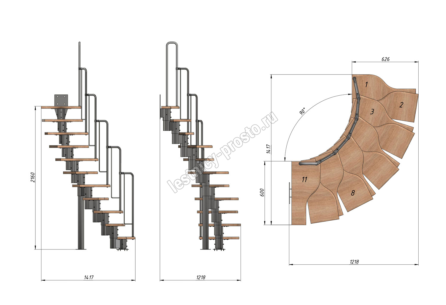 Лестница Prosto Urban Black гусиный шаг 600 мм, h198-288 см (11 ступеней)