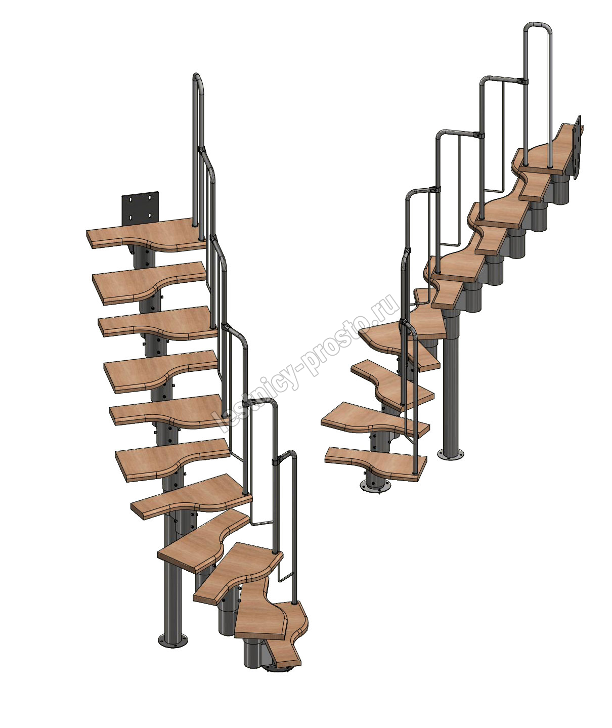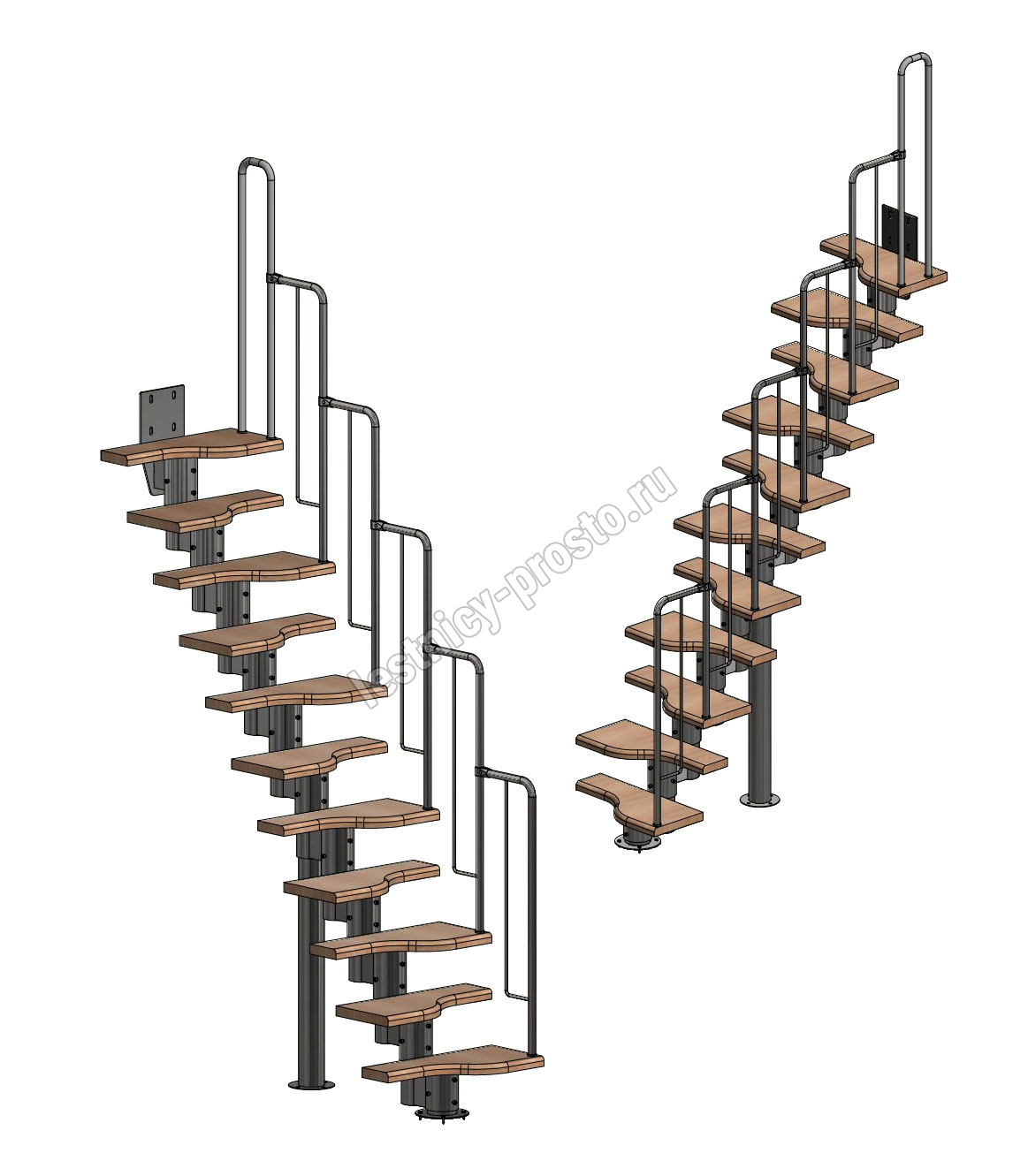 - Регулируемый по высоте в пределах 180-240 мм модуль. Большой диаметр и толщина металла деталей обеспечивают жесткость и прочность конструкции. Регулировка каждого модуля по высоте позволяет легко приспособить лестницу под ваше помещение.