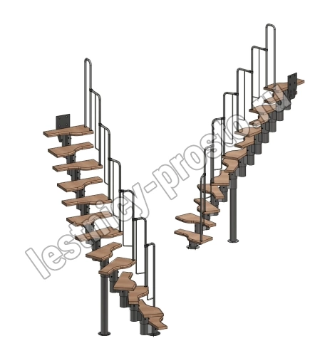 Лестница Prosto Urban Black гусиный шаг 600 мм, h234-336 см (13 ступеней), ясень