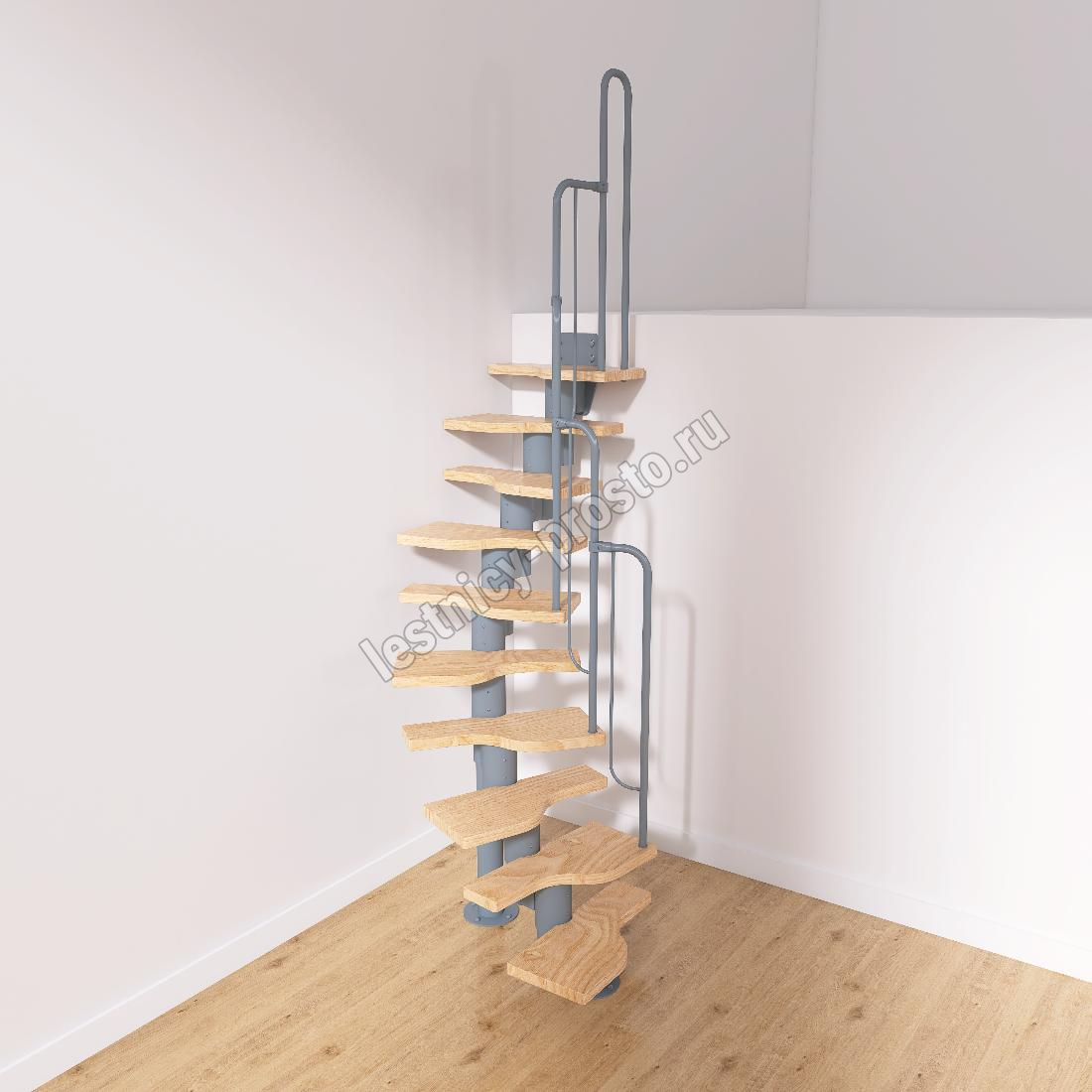 Лестница Prosto Urban Grey г-образная гусиный шаг 600 мм, h180-264 см (10 ступеней)