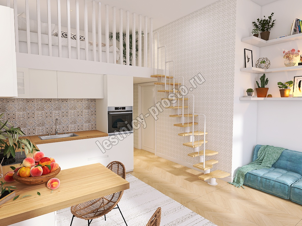 Лестница Prosto Urban White гусиный шаг 600 мм, h234-336 см (13 ступеней), берёза мультиплекс