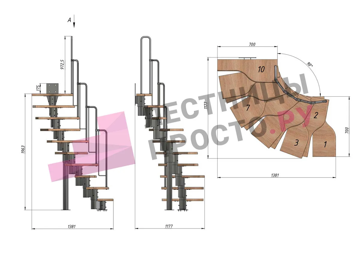 Лестница Prosto Urban White гусиный шаг 700 мм, h180-264 см (10 ступеней) берёза мультиплекс