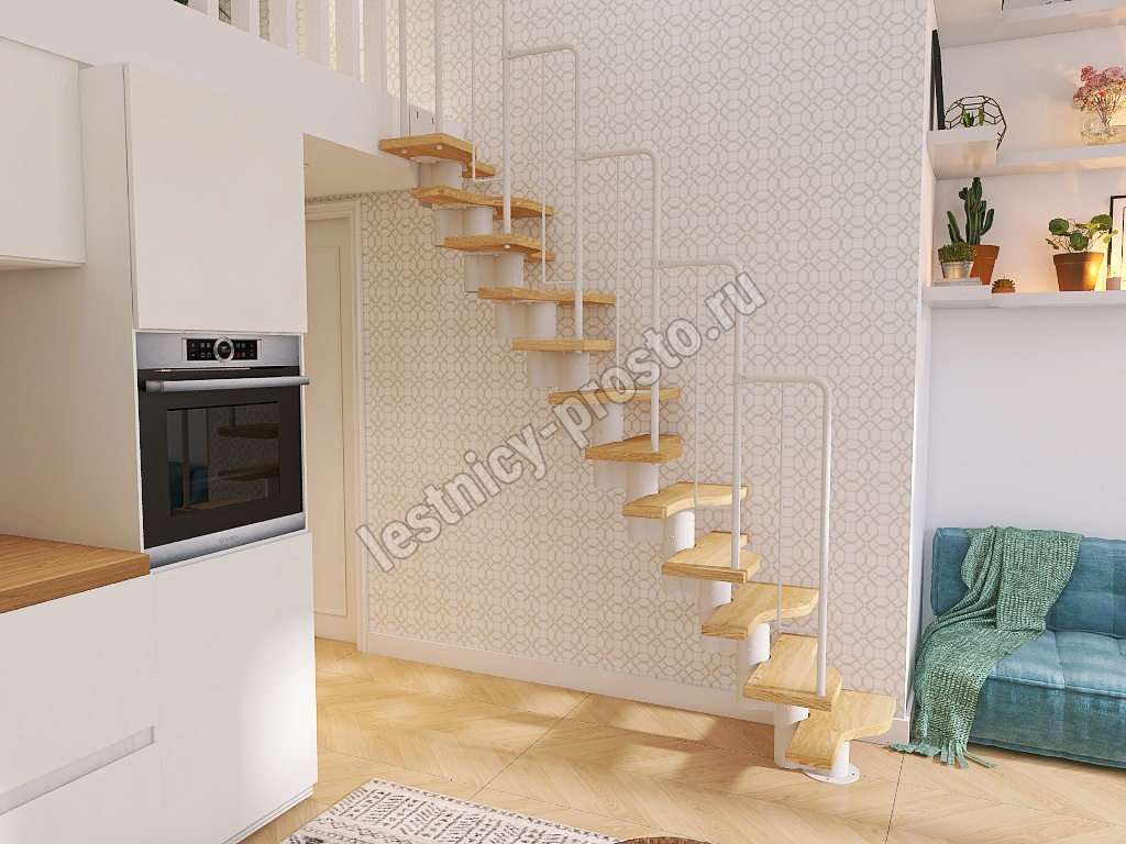 Лестница Prosto Urban White гусиный шаг 700 мм, h198-288 см (11 ступеней), ясень