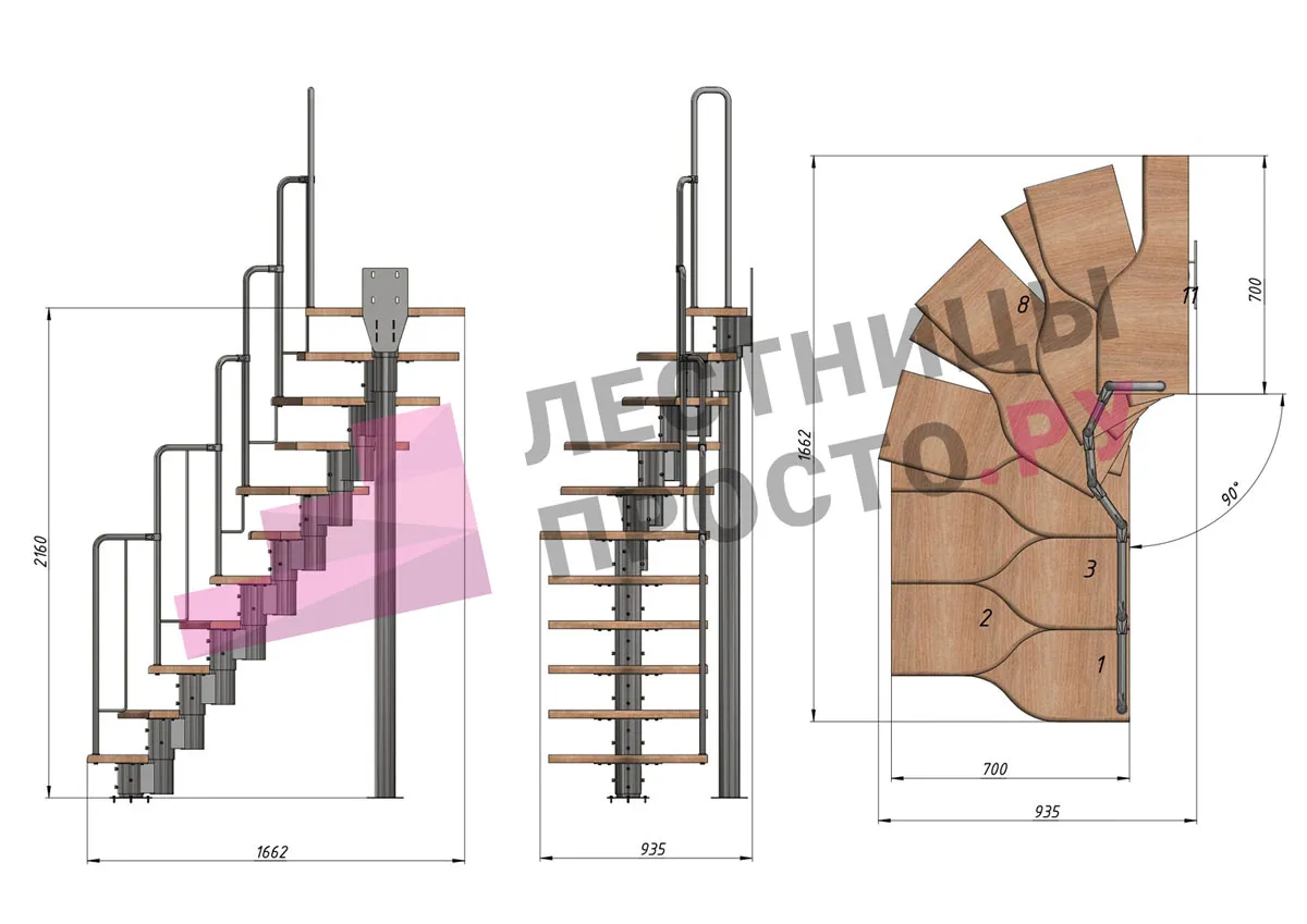 Высота лестницы 1980 - 2880 (11 ступеней) мм