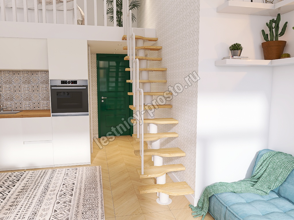 Лестница Prosto Urban White гусиный шаг 700 мм, h234-336 см (13 ступеней), дуб