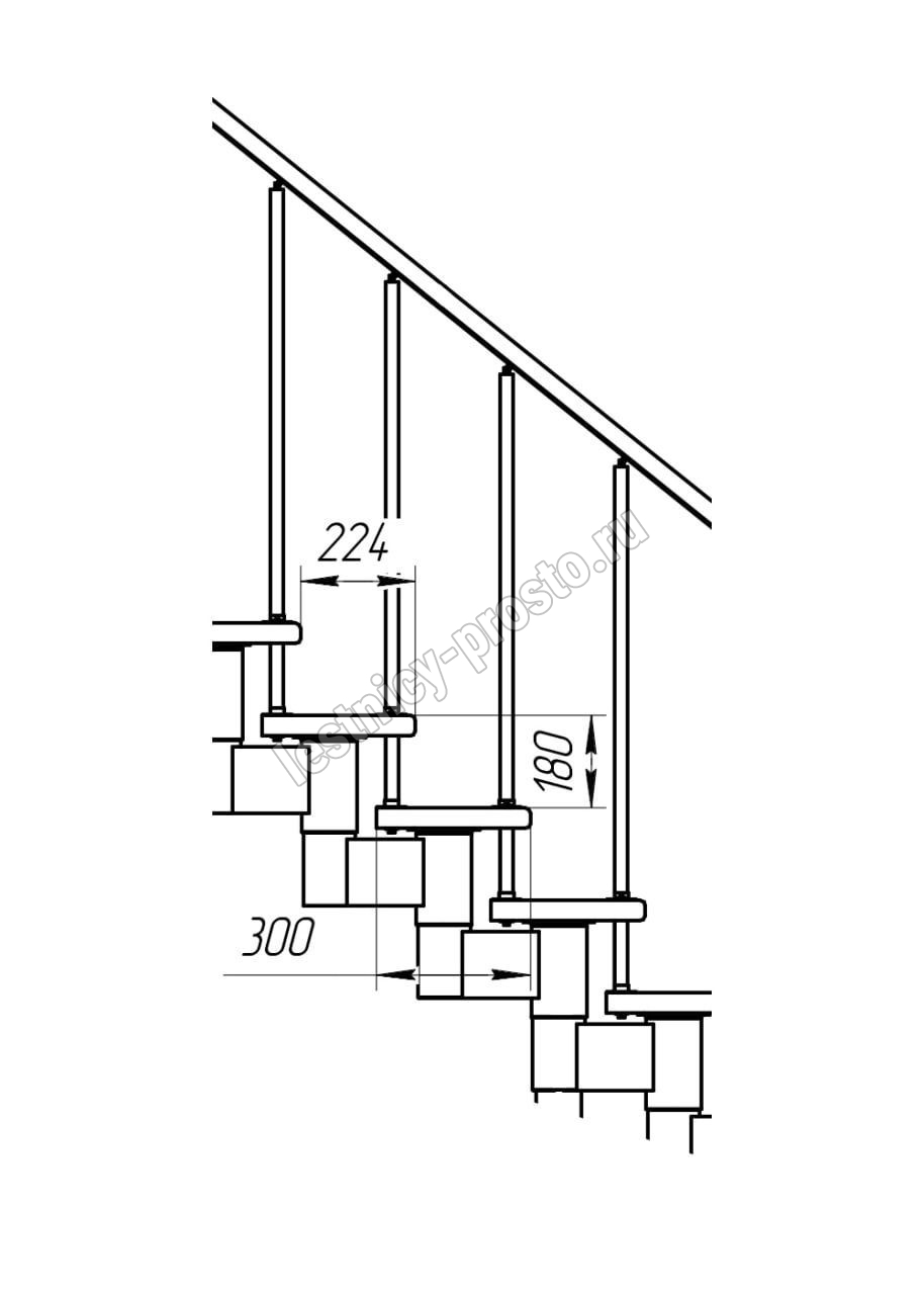 Модульная лестница Фаворит 180 2520-2660, Белый, Сосна, Нержавеющая сталь