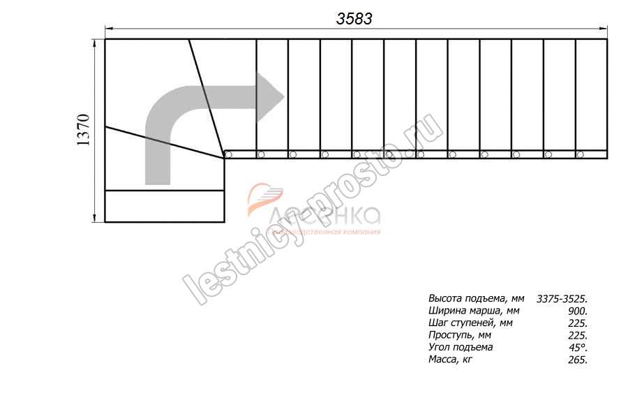 Модульная лестница Фаворит 225 3375-3525, Белый, Сосна, Крашеная, Без Ступений