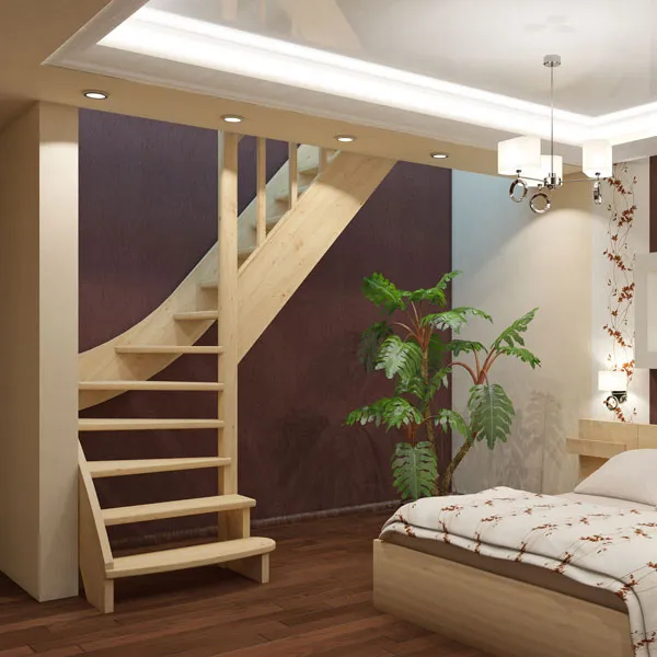 2. Верхняя ступень лестницы устанавливается ниже уровня второго этажа (добавляется еще один подъем)