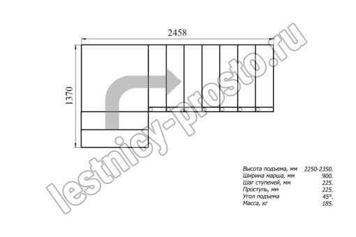 Модульная лестница Статус 225 2250-2350, Серый, Сосна, Крашеная, Без Ступений