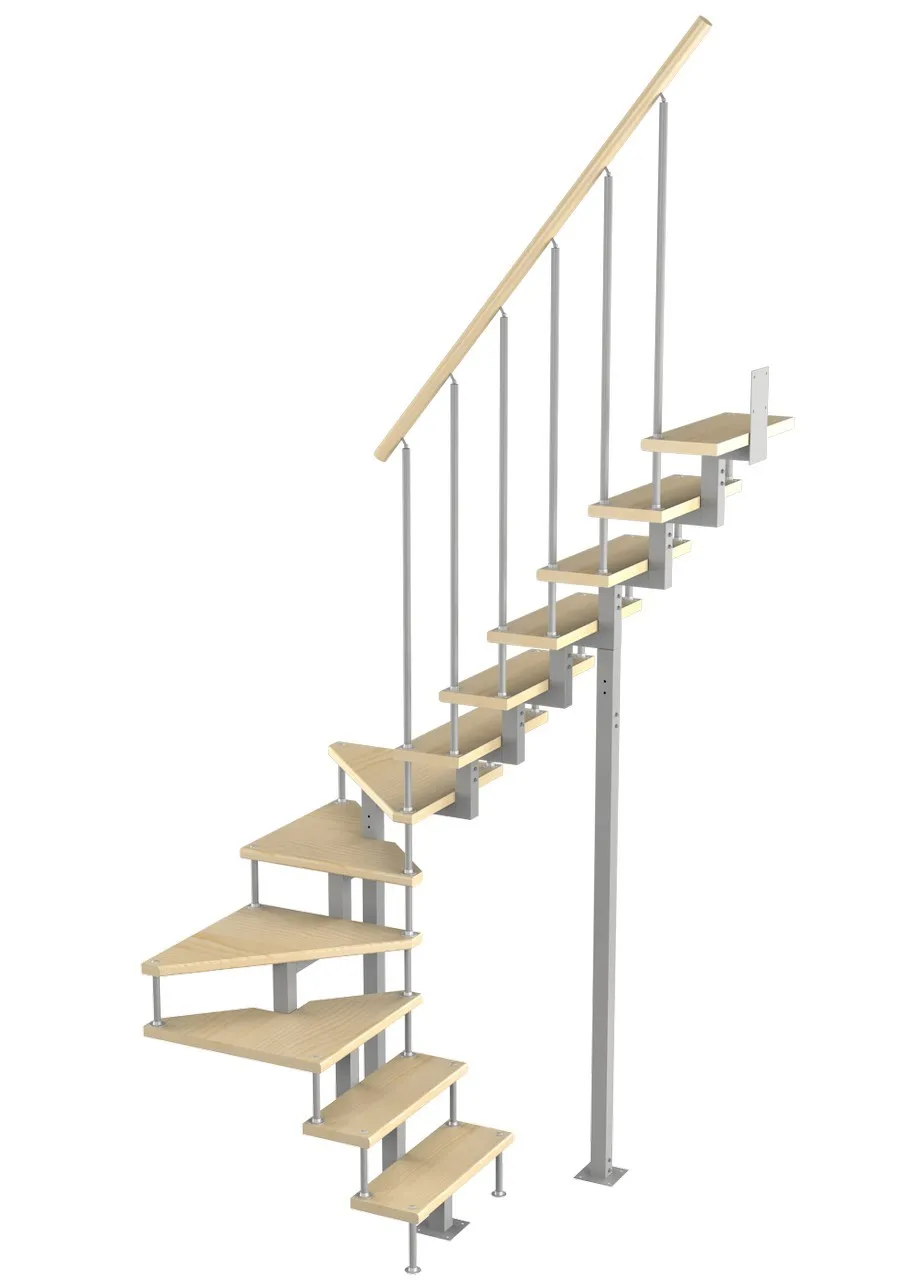 Модульная малогабаритная лестница Эксклюзив 2700-2925, Серый, Сосна, Крашеная