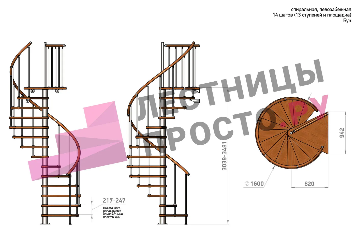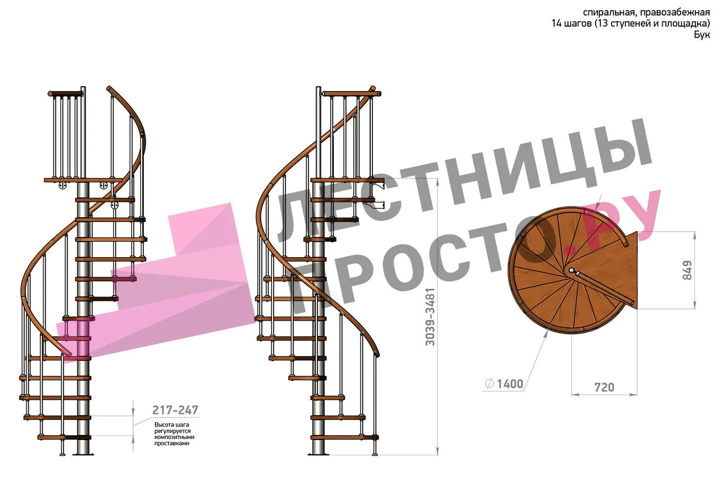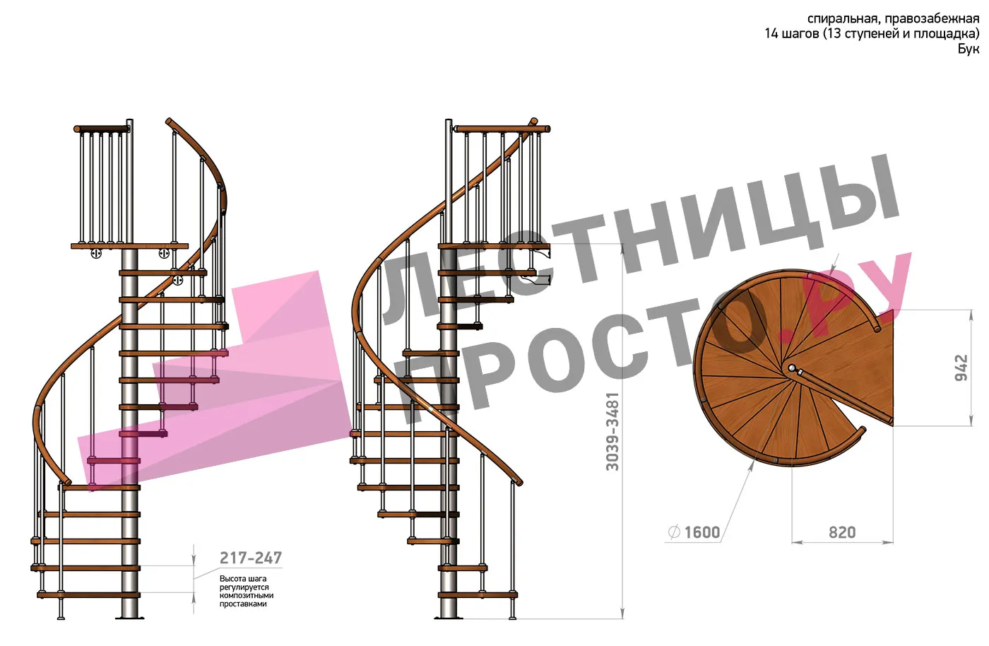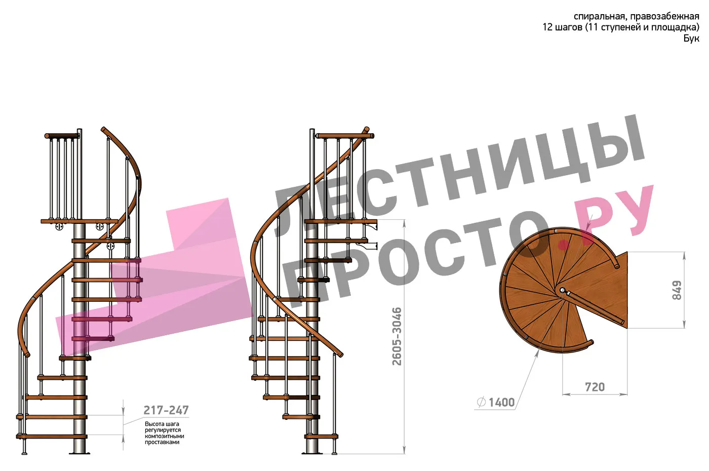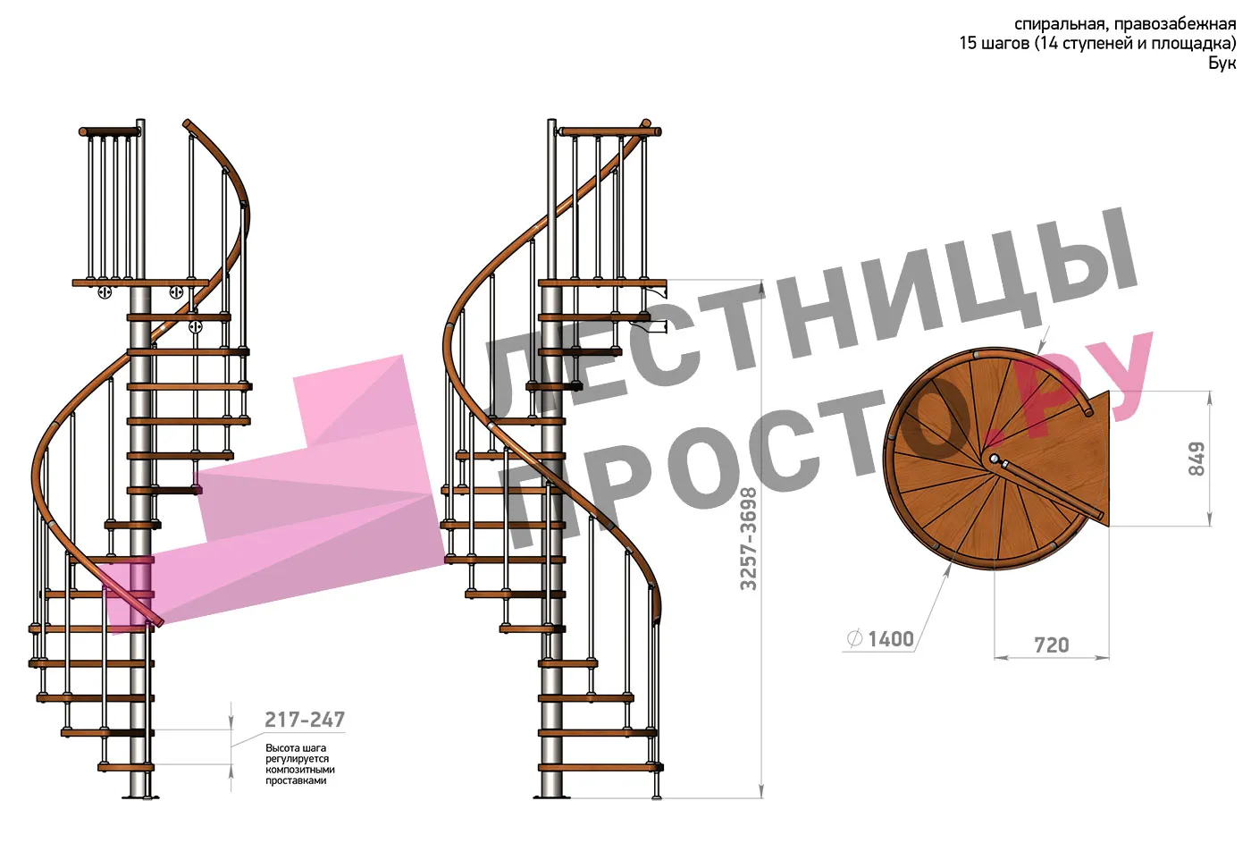 Высота ступеней регулируется с шагом 3 мм. в пределах 217-247 мм., благодаря чему, лестница прекрасно подгоняется под необходимую высоту.