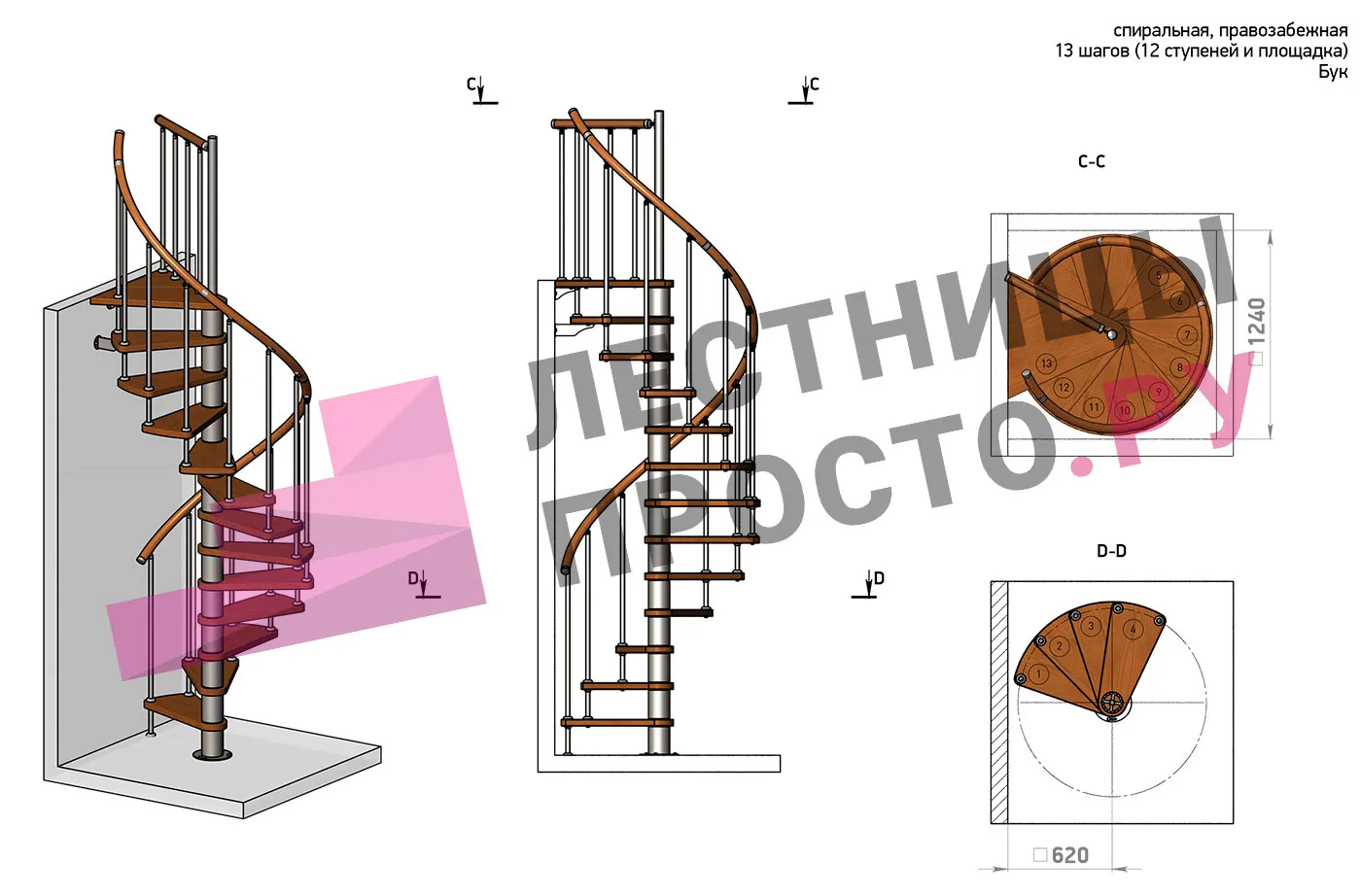 Решение об ориентации поворота принимается при сборке лестницы (комплект собирается и в правозабежную, и в левозабежную лестницу).