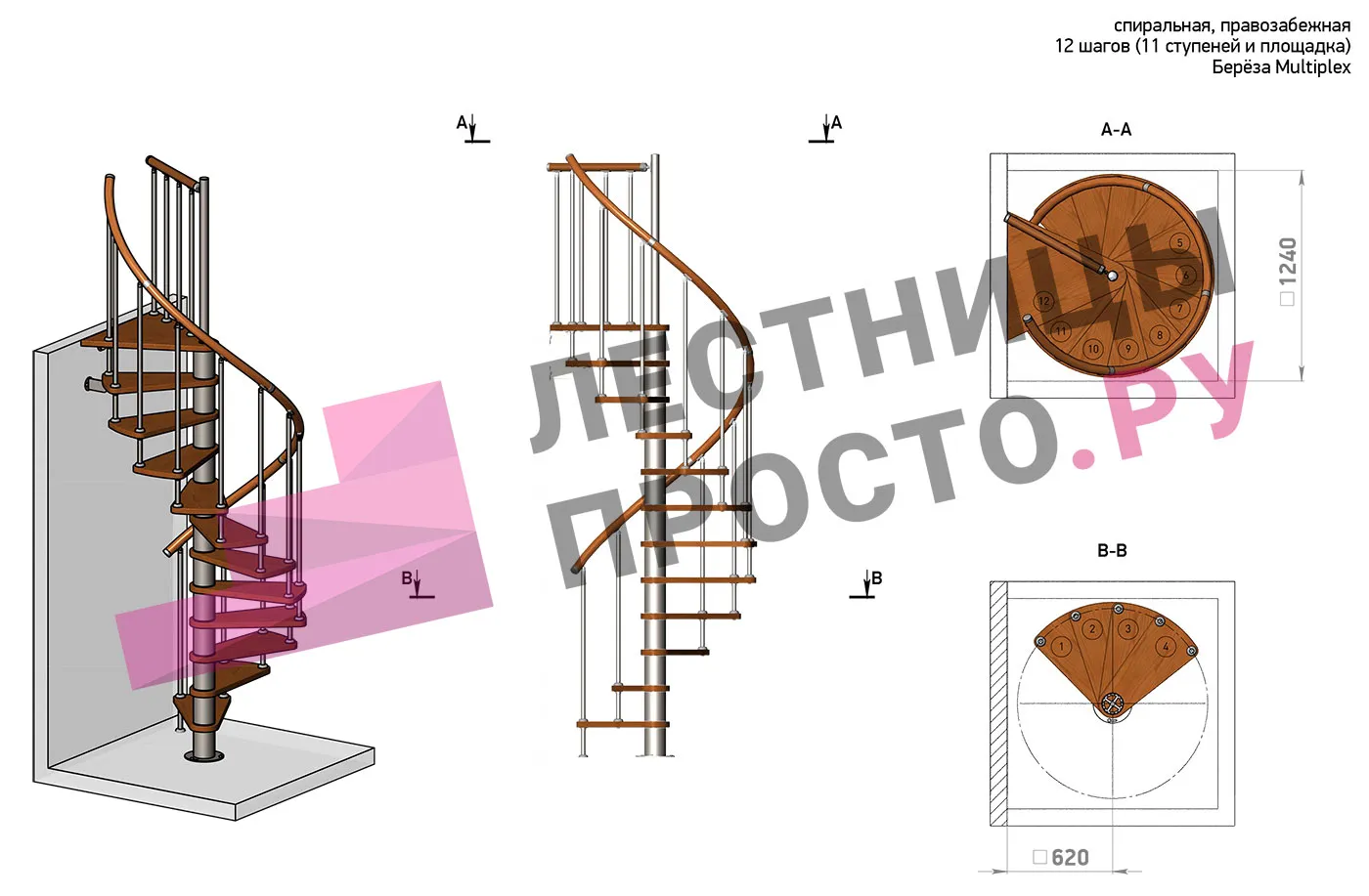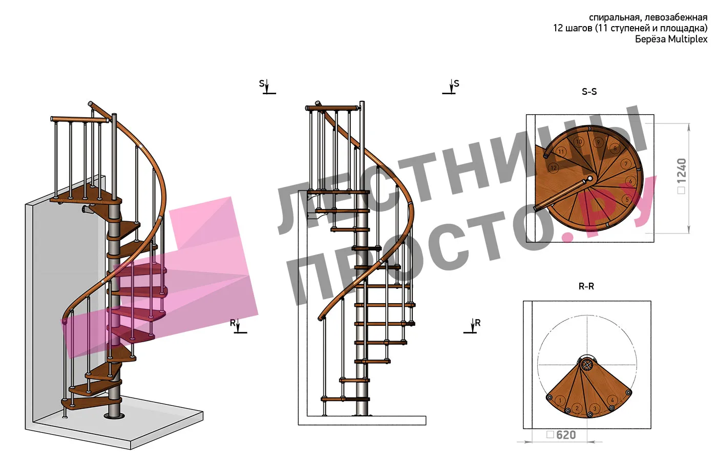 Винтовая лестница Prosto Spiral White D120см, h254.5-289.8 см