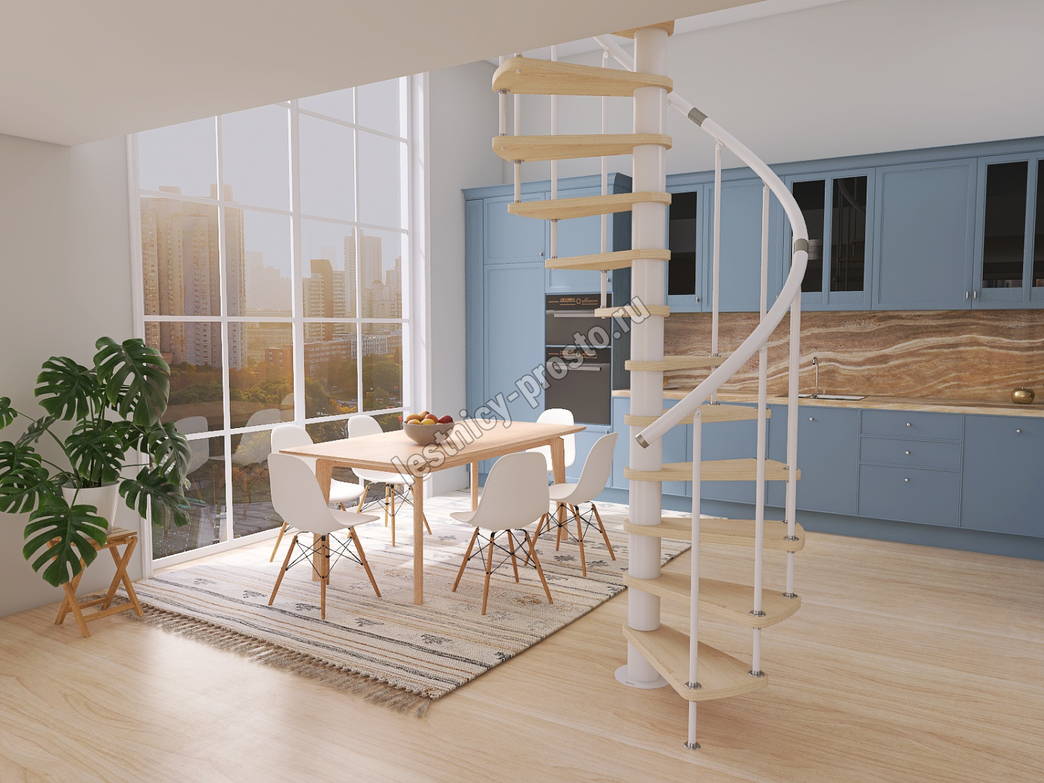 Винтовая лестница Prosto Spiral White D120см, h318.2-362.3 см
