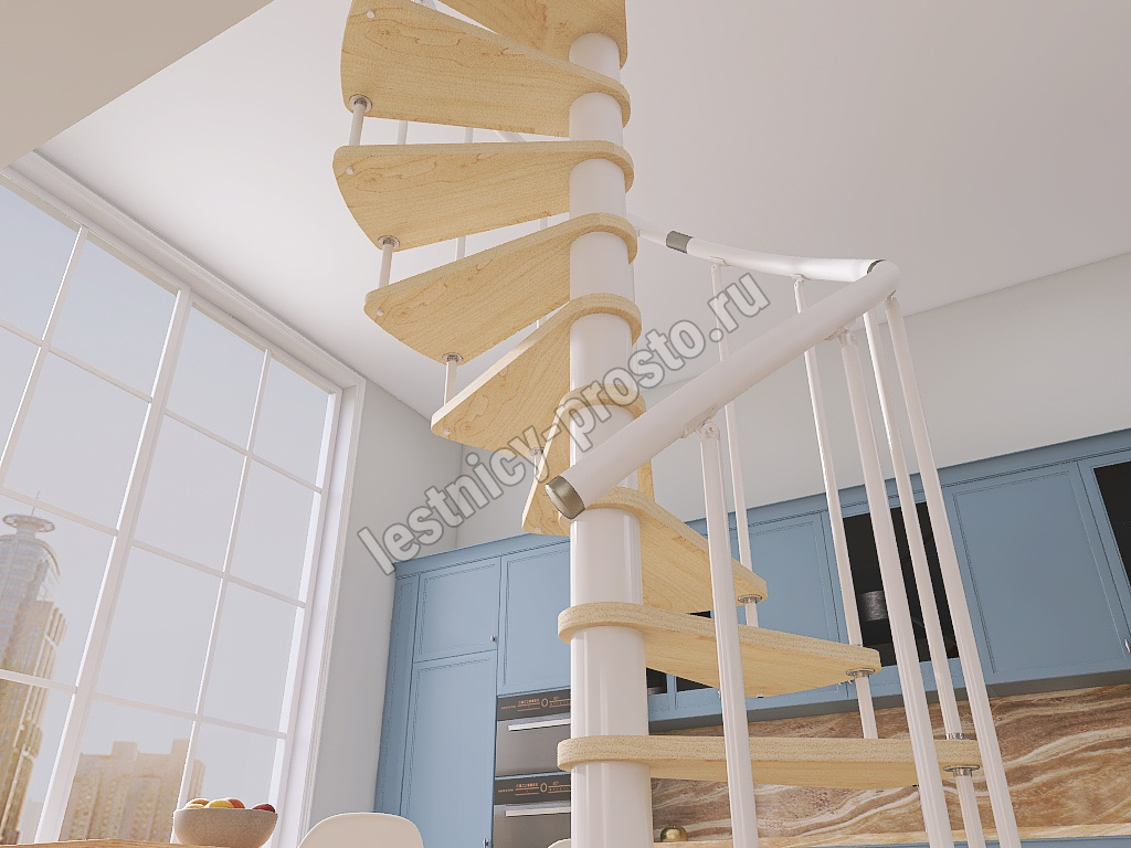 Винтовая лестница Prosto Spiral White D140см, h303.9-348,1 см, бук
