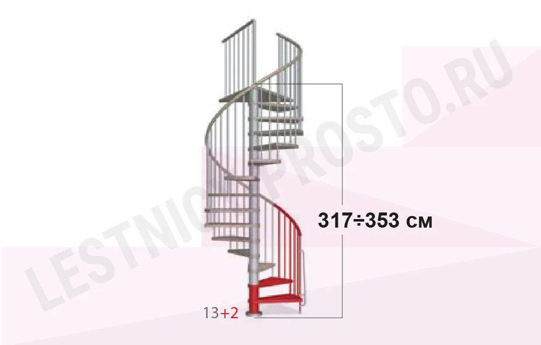 Площадка лестницы позволяет вмонтировать ее в проём потолка любой формы и размера. При монтаже лестницы, с помощью специальных пластиковых вставок, варьируется высота шага в пределах от 210 мм до 235 мм, за счёт чего общая высота лестницы может быть получена в пределах ;от 2530 мм до 3060 мм. С помощью дополнительных секций можно увеличить высоту базовой модели до 3770 мм. Клан создается путем сочетания цветов стали со светлыми (натуральными) или темными тонированными однотонными протекторами из бука. Поручни из ПВХ с эффектом дерева с алюминиевым сердечником выпускаются в светлом или темном исполнении, чтобы соответствовать оттенку протектора. Перила состоят из стальных балясин, окрашенных в черный (RAL 9017), белый (RAL 9010) или серый (RAL 9006). Концы черные для черной лестницы и серые для серой и белой лестниц.
