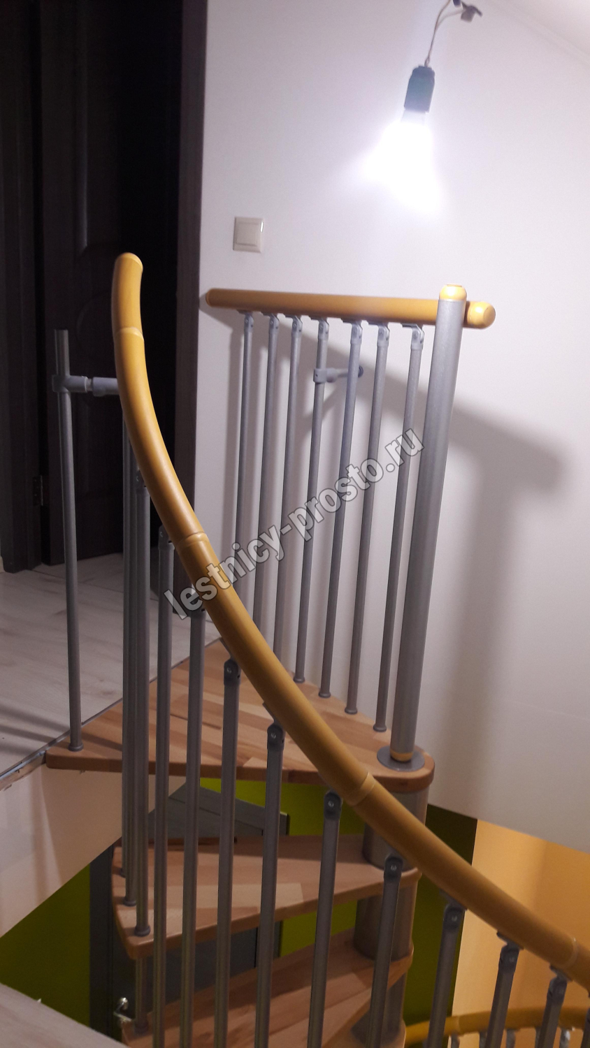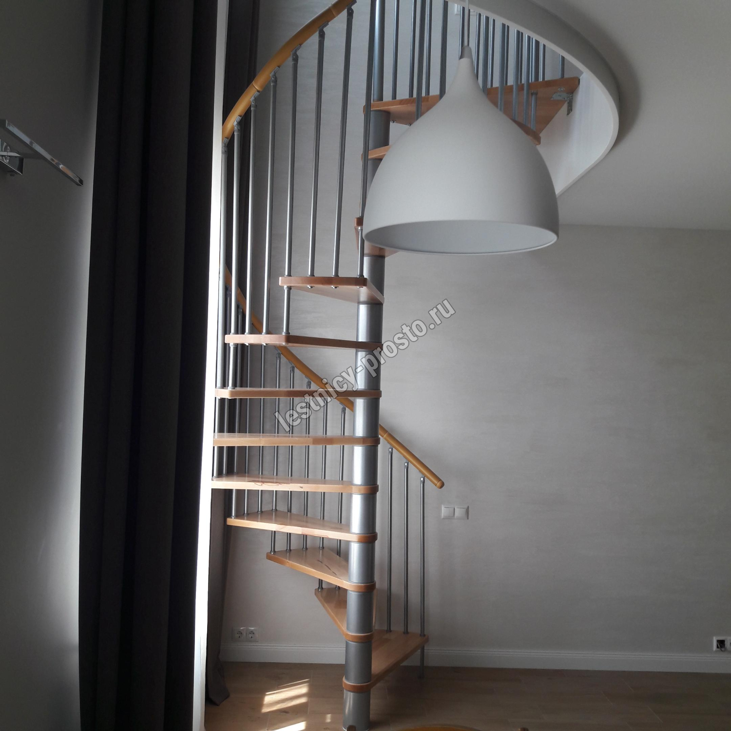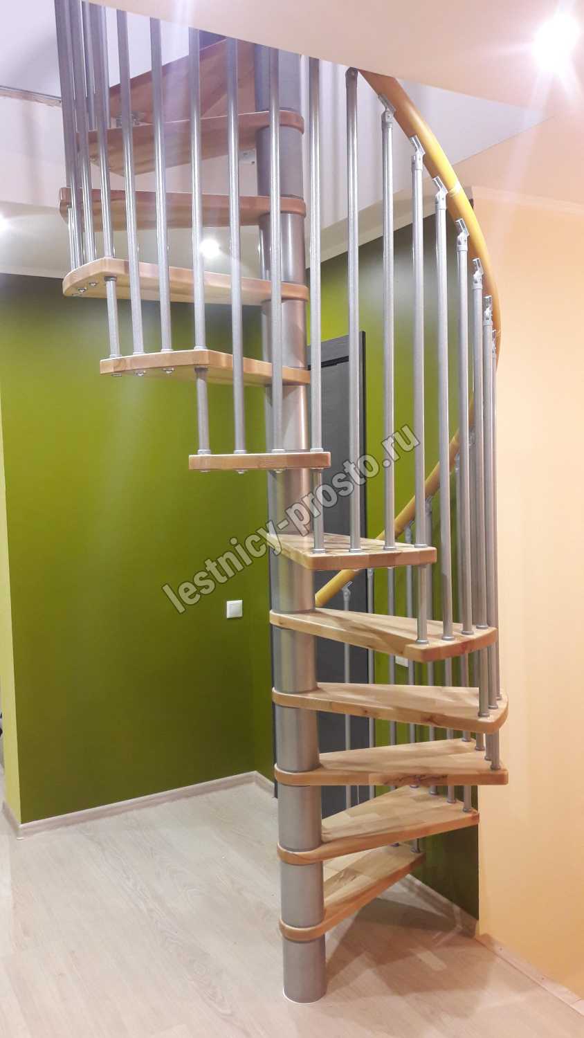Винтовая лестница SPIRAL DECOR d140 см, серебро, бук лакированный