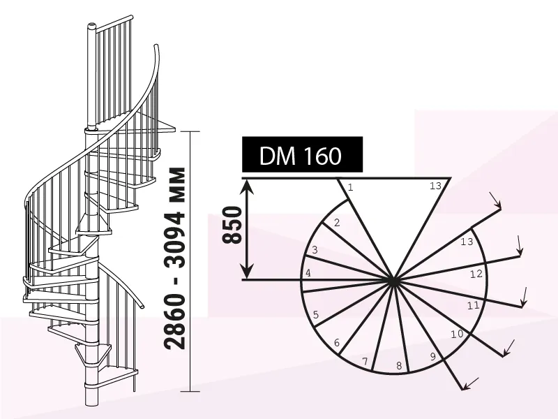 Винтовая лестница SPIRAL EFFECT d160 см, серебро, бук лакированный