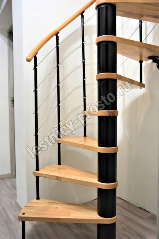 Cтупени и поручень изготовлены из массива дуба и покрыты специальным лаком от компании Минка, который предотвращает царапины, сколы или стирание поверхности при интенсивном использовании лестницы. Благодаря возможности регулировать высоту шага с помощью пластиковых вставок (входят в базовый комплект), высоту лестницы можно варьировать в пределах от 2860 до 3090 мм. Кроме того, купив дополнительную секцию для этой лестницы, можно поднять высоту до 3320 мм.
