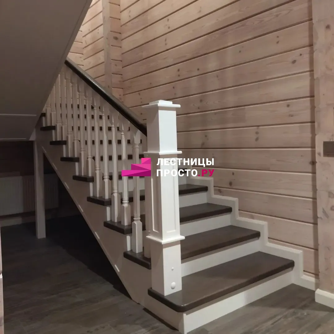 Лестница LP из сосны на второй этаж с поворотом на 180 градусов